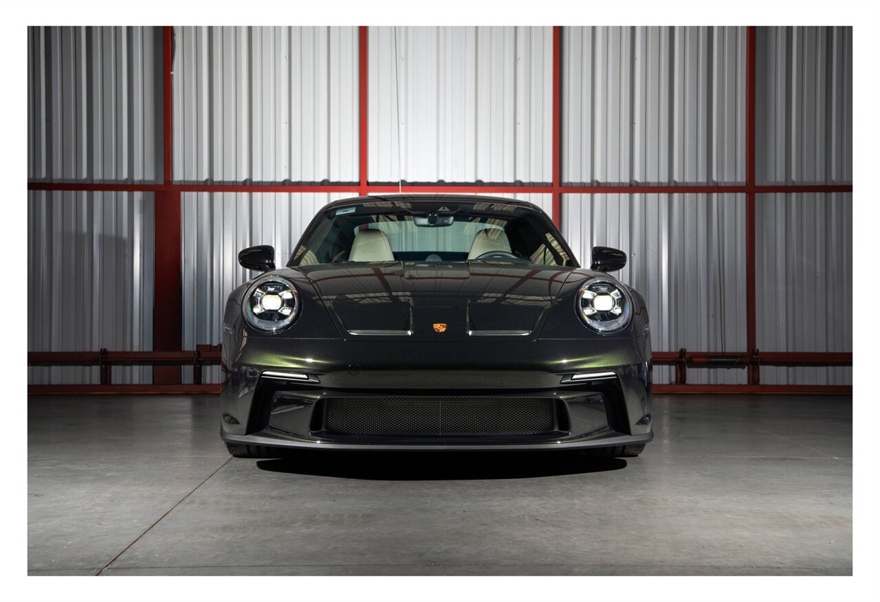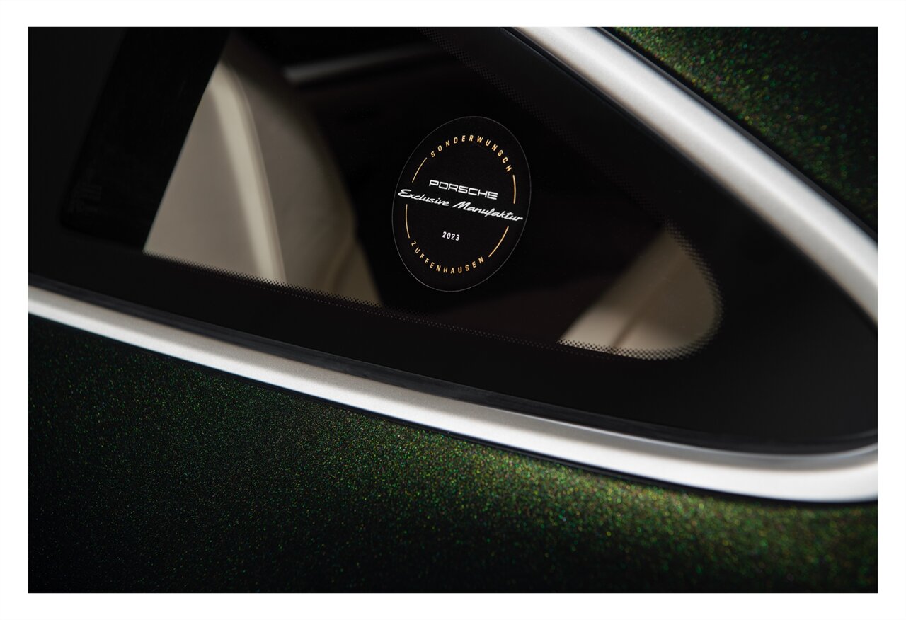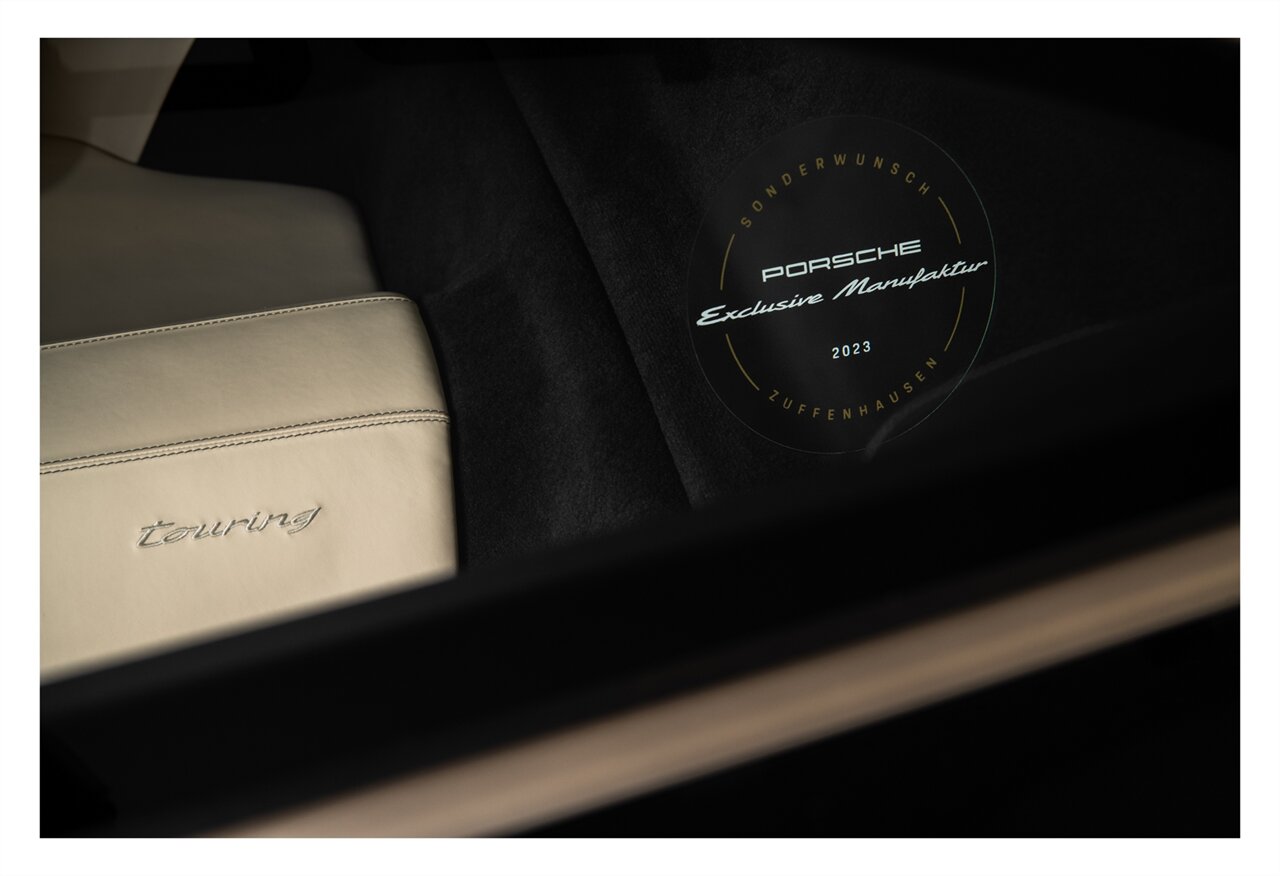 Offered for sale is a 2023 Porsche 911 GT3 Touring in Paint to Sample Dark Olive Metallic with Exclusive Manufaktur interior in Cream and Black with accent piping in Cream and Deviated Stitching in Black. This incredible 992.1 Touring is one of a kind for many reasons, but the standout detail that brings it together is the 930 Leather Package. An option which was never offered through Exclusive Manufaktur or Sonderwunsch on the 992 GT variants but was granted through board approval on this example, and it remains the only 992.1 GT3 Touring featuring this interior. It carries $94,275 worth of tasteful Sonderwunsch options that make it the perfect gentleman’s Touring and an equally stunning museum piece to lust over. The standout items are the Front Trunk customized entirely in Cream leather and Black deviated stitching, the engine cover painted in Dark Olive Metallic with the GT3 Touring lettering in White Gold, the full Window Trims in White Gold, and the passenger dash trim inlayed with the “Sonderwunsch” logo in White Gold. Lastly, the entire car is wrapped in XPEL Paint Protection Film and has been meticulously serviced and maintained from new by its original owner. The additional equipment options outside of the paint and interior selections include: