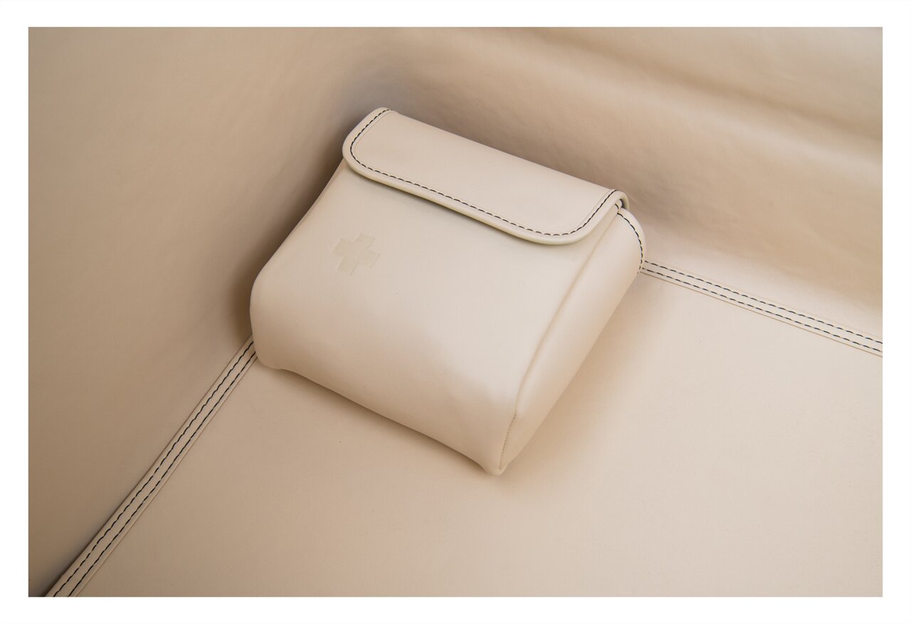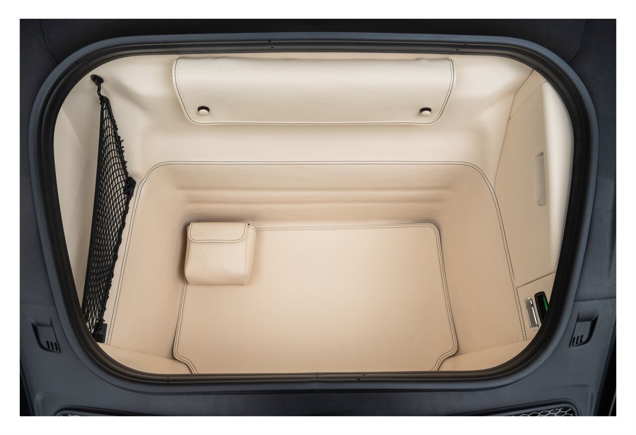 Front Trunk in Cream Leather w/ Black Stitching & Mat w/ Cream Leather Edging & Black Stitching